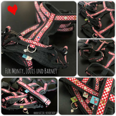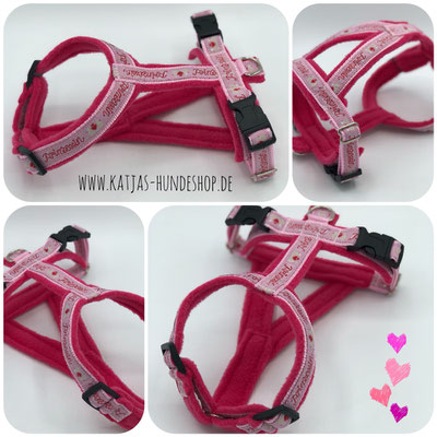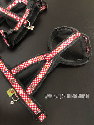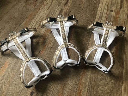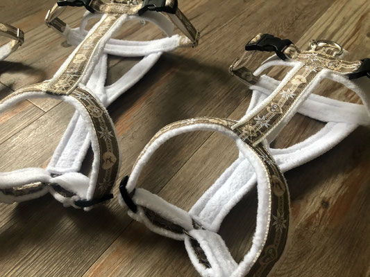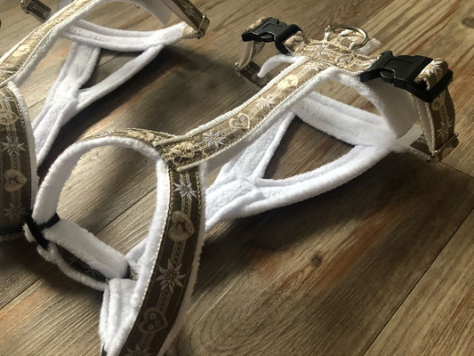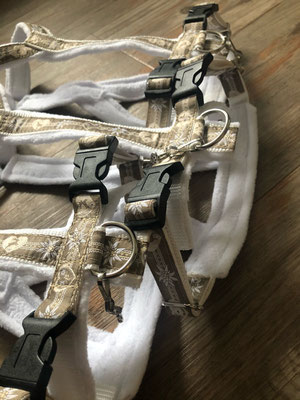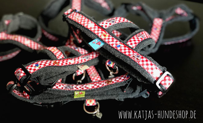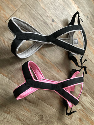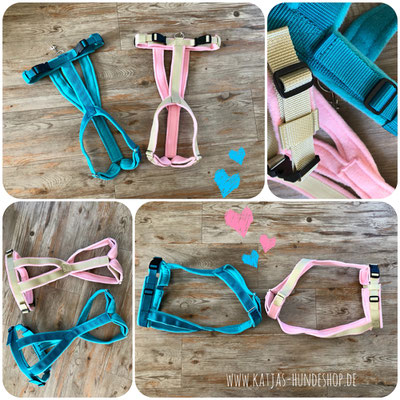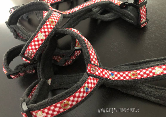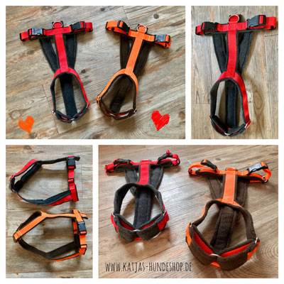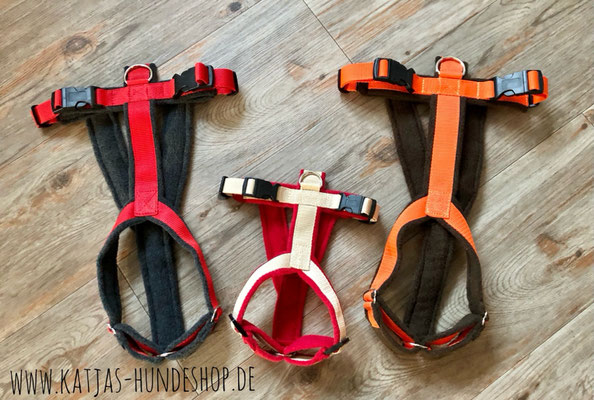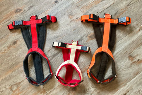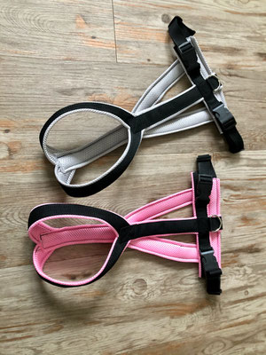 Brustgeschirre "Soft & Fit", mit geteiltem Bauchsteg für eine noch bessere Passform, Halsstege können auf Wunsch verstellbar gemacht werden und sind weich gepolstert.