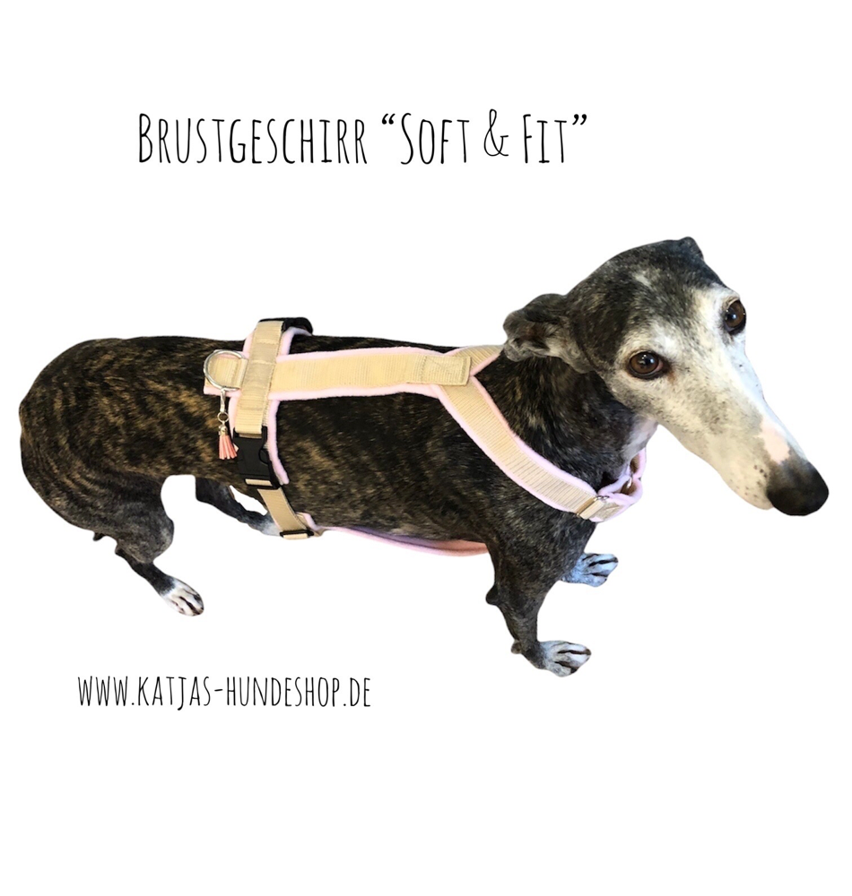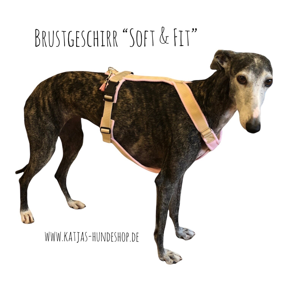 Brustgeschirre „Soft & Fit“ mit geteiltem Bauchsteg für eine bessere Passform und verstellbaren Halsstegen, weich gepolstert für aktive und sportliche Hunde.